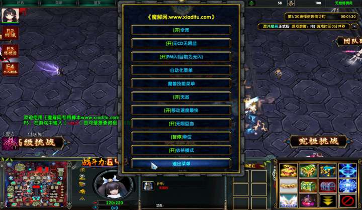 | 技能菜单【光环类技能】 | 自动化菜单【自动加钱木,提升英雄三围】 |