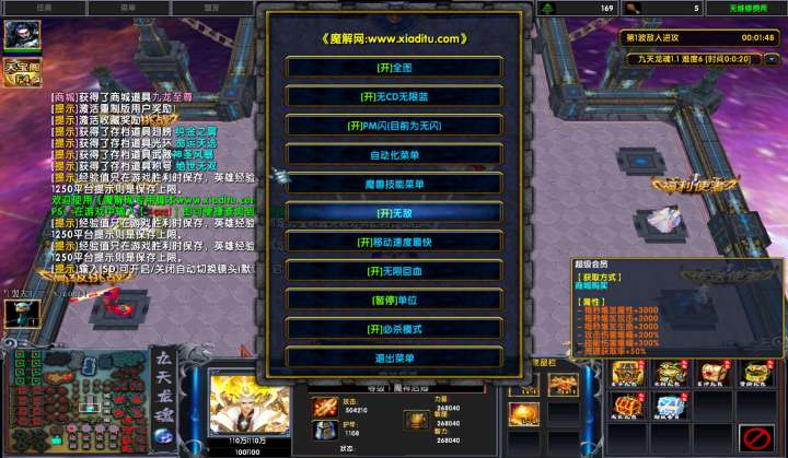 | 技能菜单【光环类技能】 | 自动化菜单【自动加钱木,提升英雄三围】 |