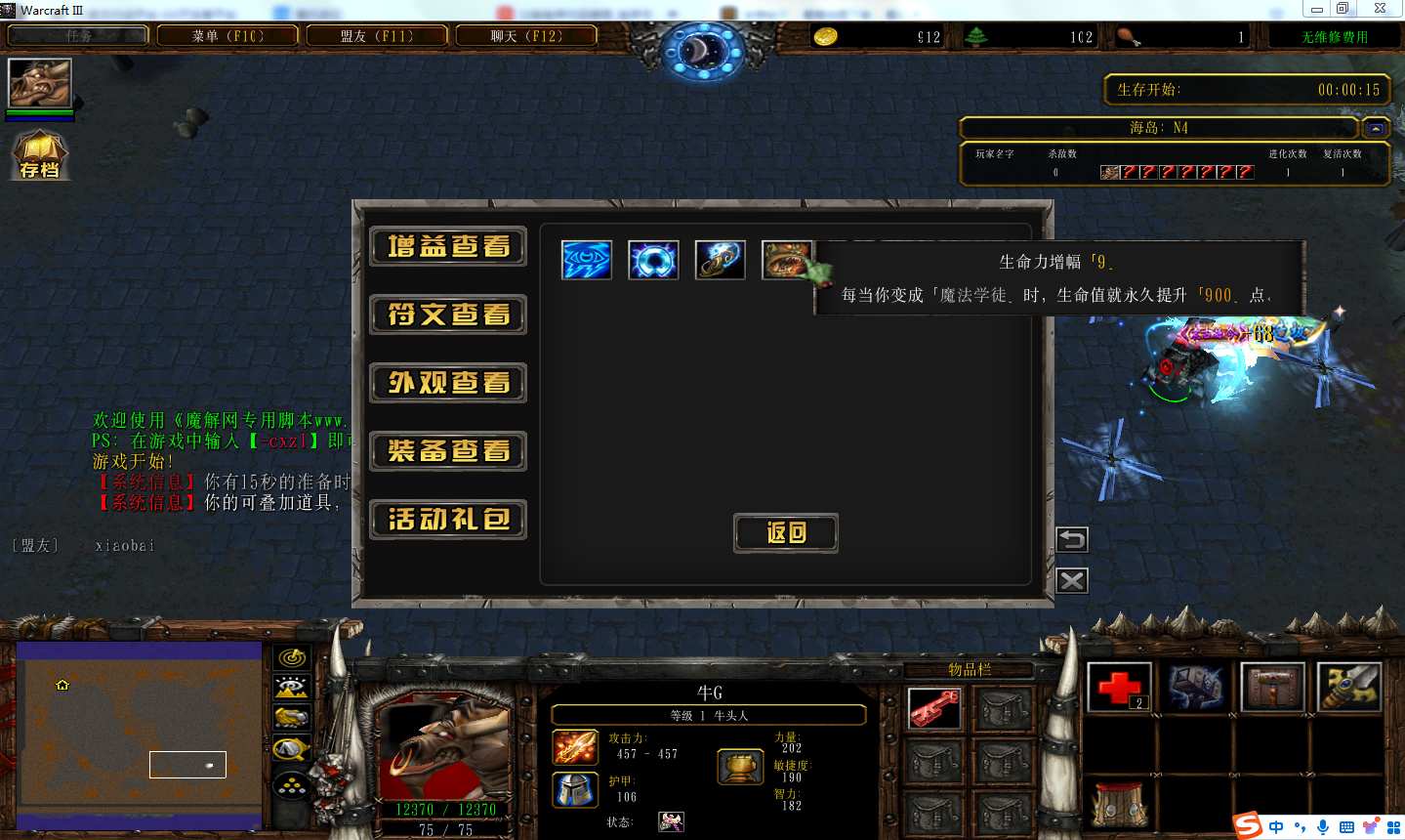 地图名字:重生之海岛割草1.2.21地图下载+全商城特权+全存档+无CD+指令功能