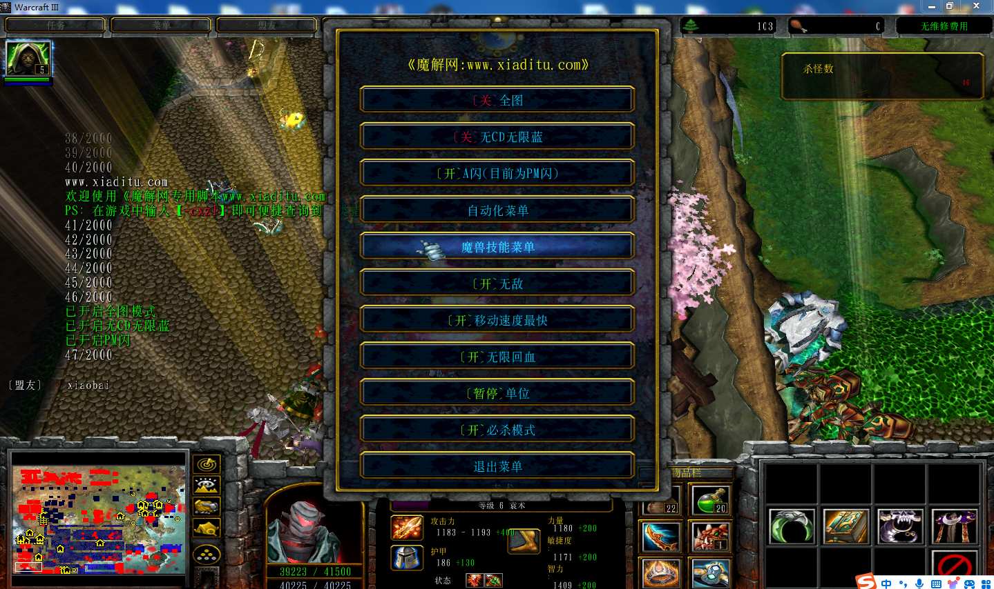 | 技能菜单【光环类技能】 | 自动化菜单【自动加钱木,提升英雄三围】 |