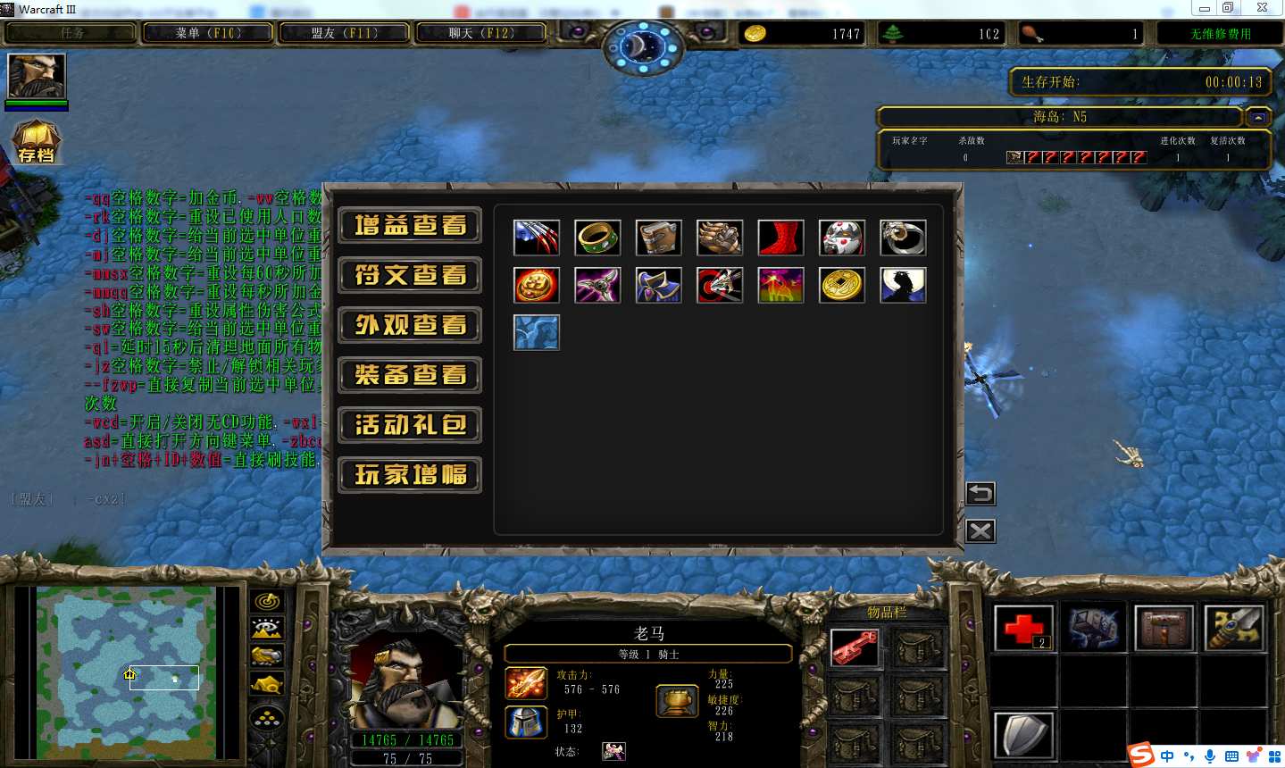 地图名字:重生之海岛割草1.2.28地图下载+全商城特权+全存档+无CD+指令功能