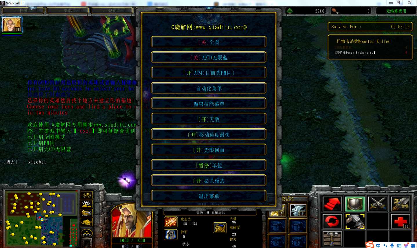 | 技能菜单【光环类技能】 | 自动化菜单【自动加钱木,提升英雄三围】 |