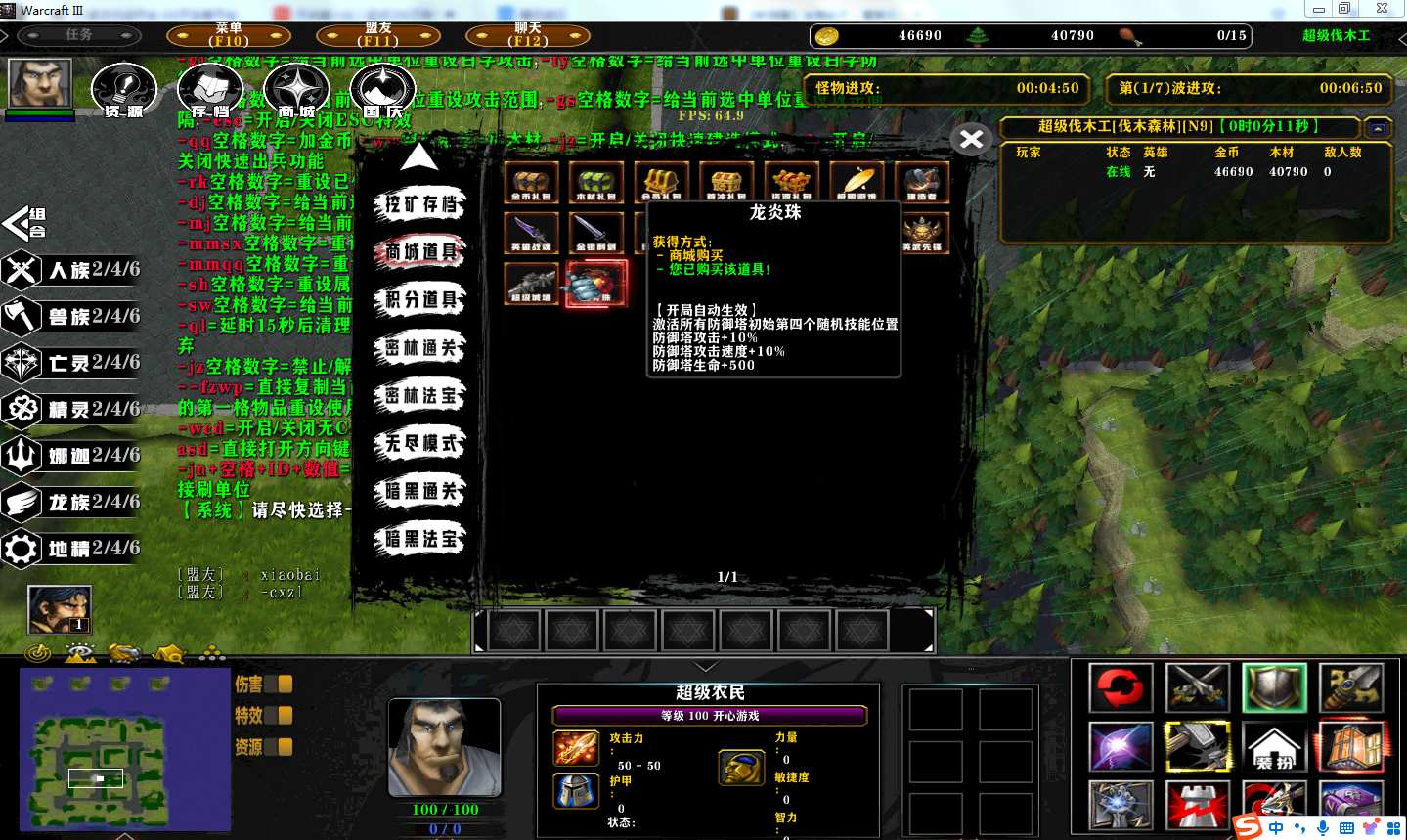 | 技能菜单【光环类技能】 | 自动化菜单【自动加钱木,提升英雄三围】 |