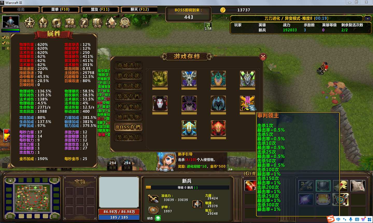 地图名字:刀刀进化1.2.0地图下载+全商城特权+存档+全难度解锁+无CD+指令功能