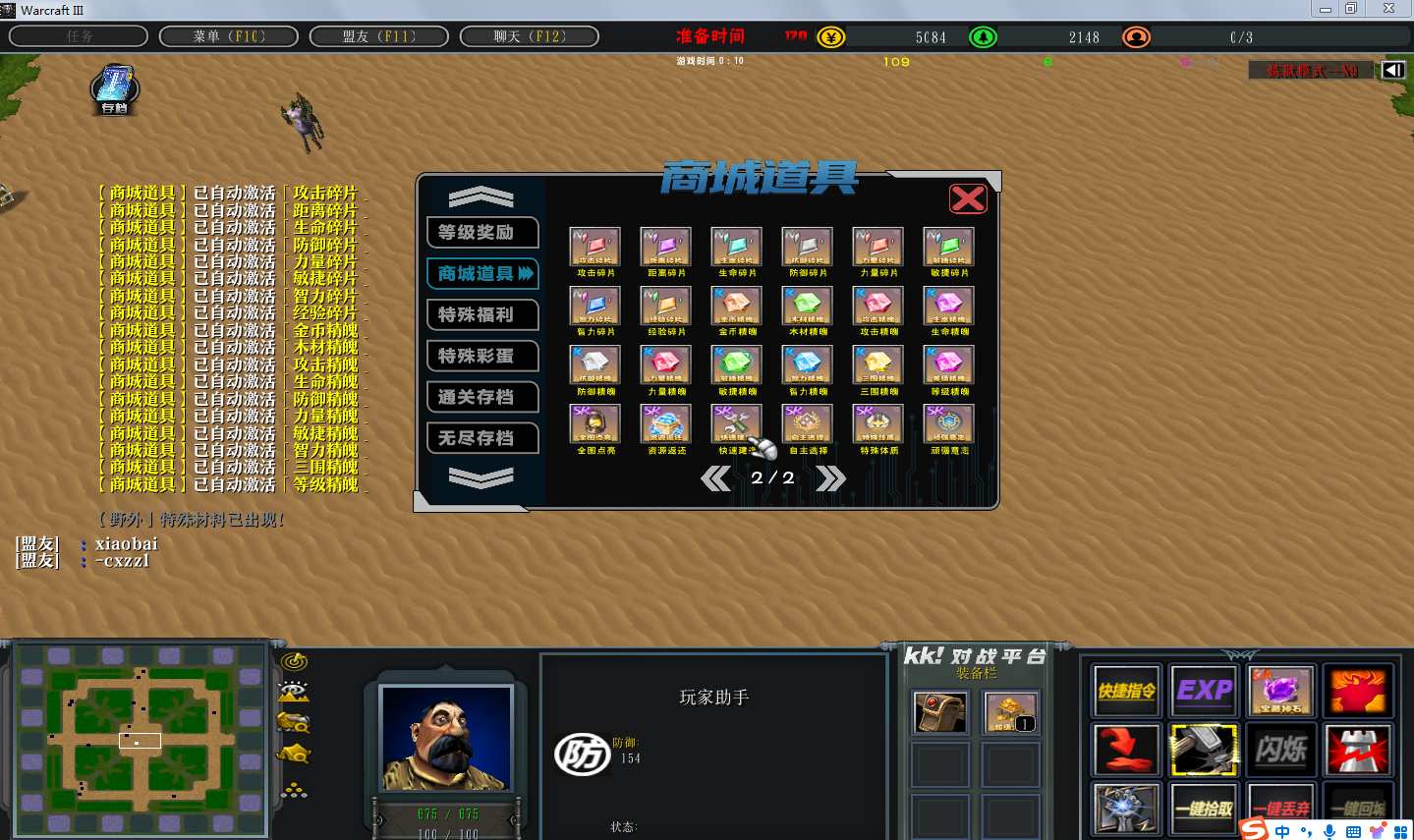 | 技能菜单【光环类技能】 | 自动化菜单【自动加钱木,提升英雄三围】 |