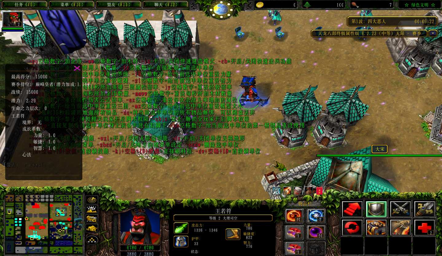 地图名字:天龙八部终极属性版 6.2.23地图下载+全商城特权+全存档+巅峰皇者+无CD+指令功能