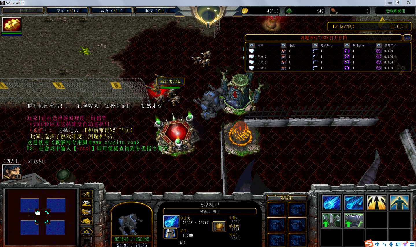 | 技能菜单【光环类技能】 | 自动化菜单【自动加钱木,提升英雄三围】 |