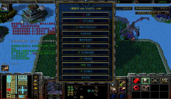 | 技能菜单【光环类技能】 | 自动化菜单【自动加钱木,提升英雄三围】 |
