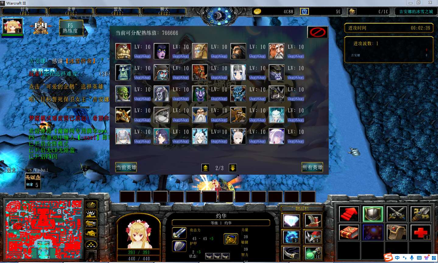 吉安娜的冰雪之城1.7.2地图下载+全商城特权+全存档+隐藏英雄+无CD+指令功能: