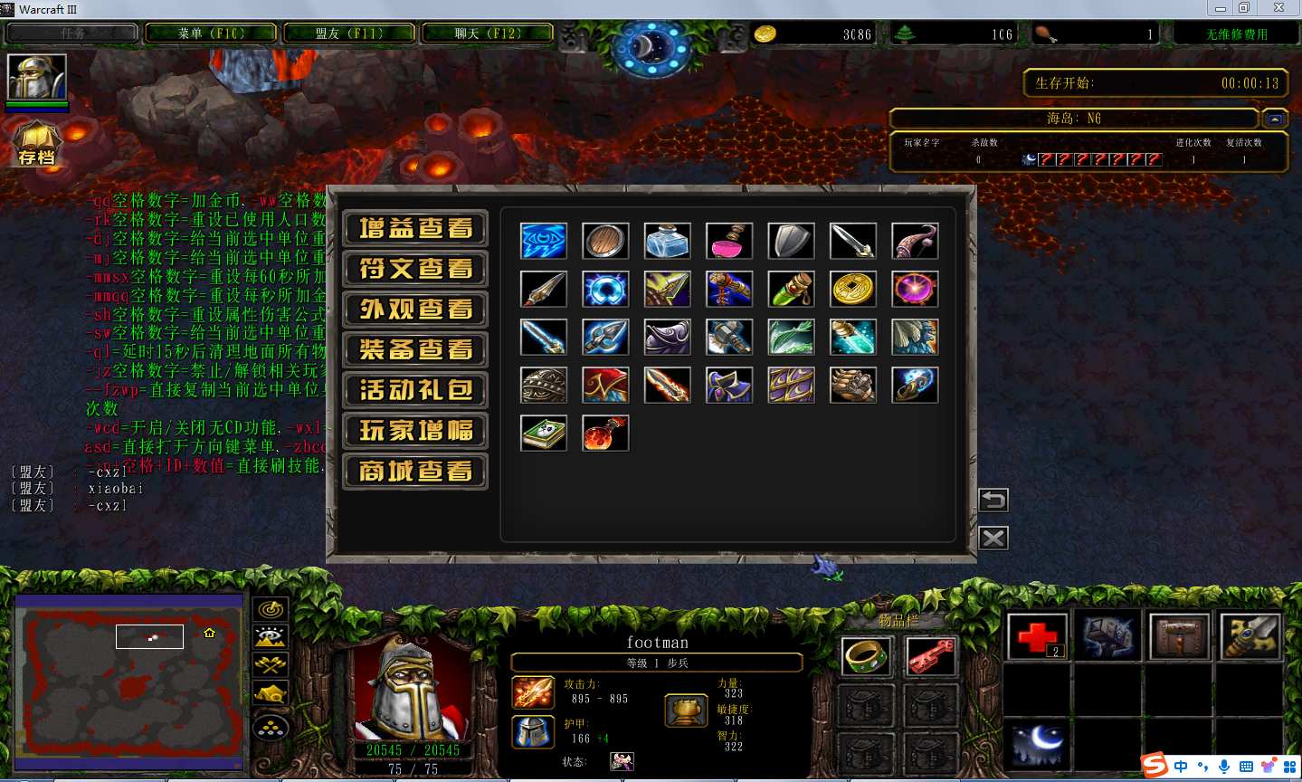 地图名字:重生之海岛割草1.3.9地图下载+全商城特权+全存档+无CD+指令功能