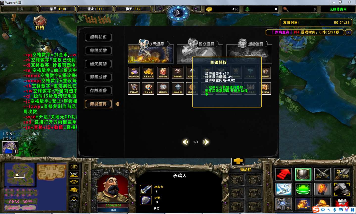 | 技能菜单【光环类技能】 | 自动化菜单【自动加钱木,提升英雄三围】 |