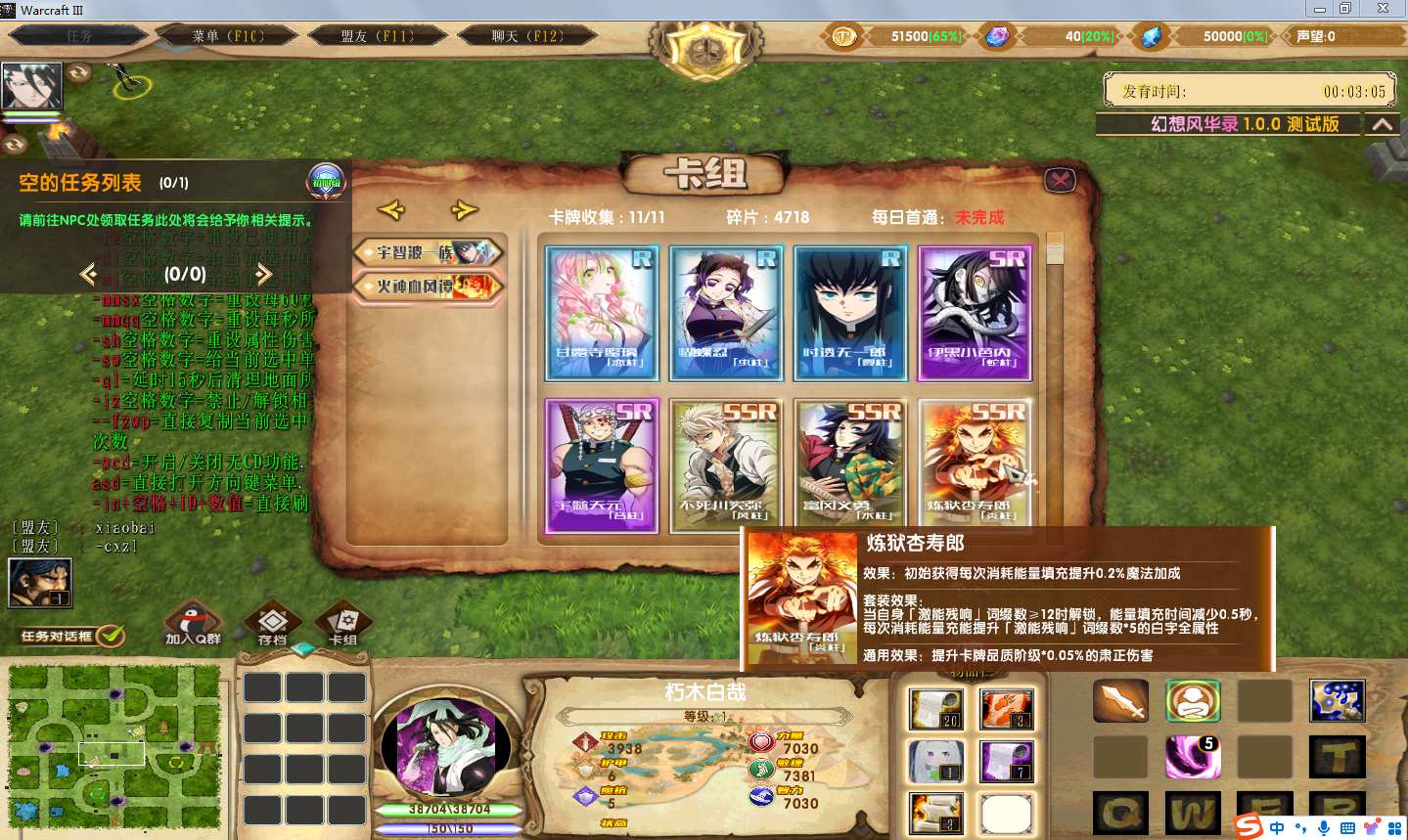地图名字:幻想风华录1.9.64地图下载+全商城特权+全存档+隐藏英雄+无CD+指令功能
