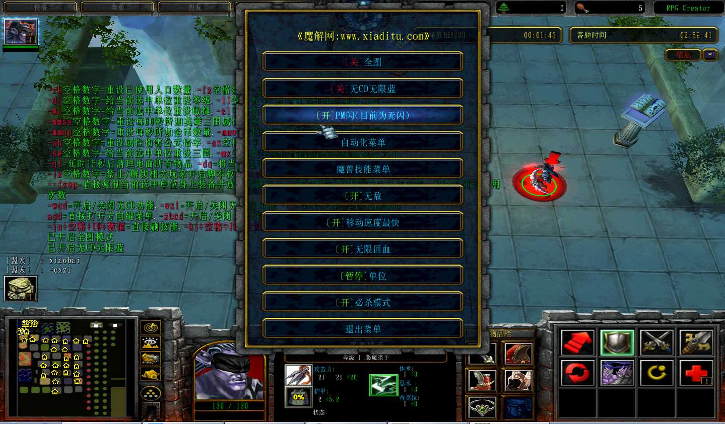 | 可设置英雄经验倍率 | 可解绑单位身上的物品 |