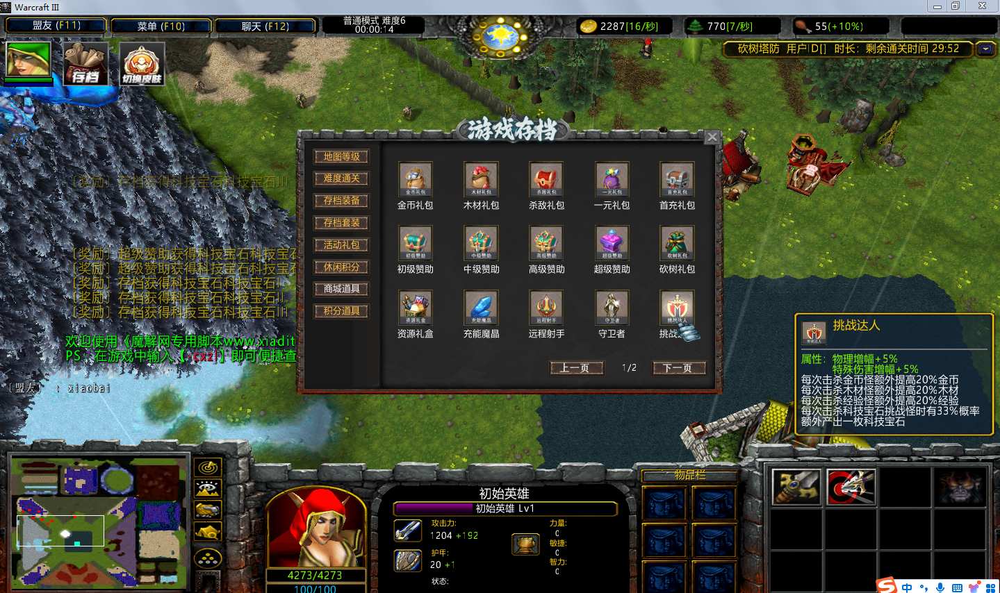 | 技能菜单【光环类技能】 | 自动化菜单【自动加钱木,提升英雄三围】 |