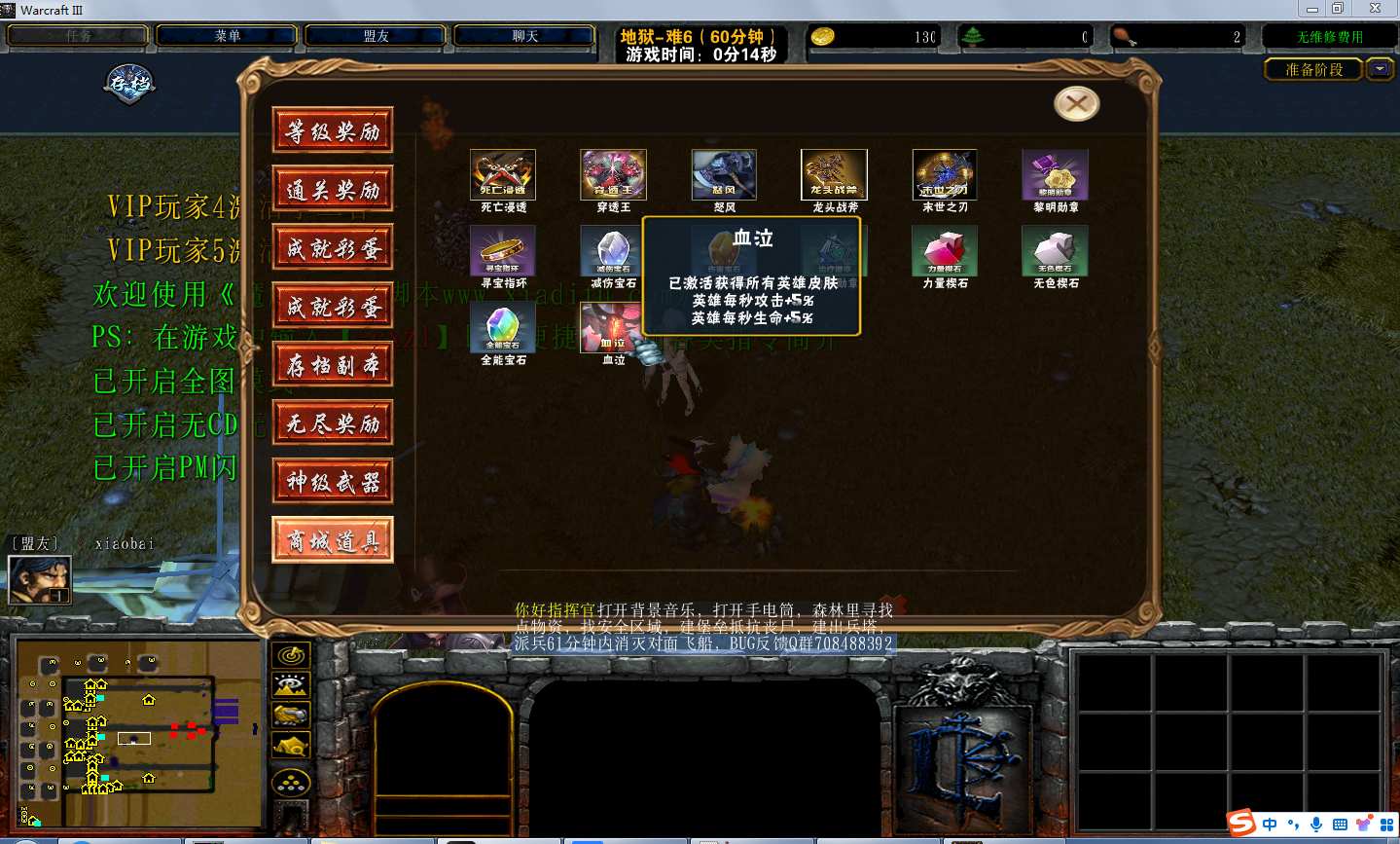 | 技能菜单【光环类技能】 | 自动化菜单【自动加钱木,提升英雄三围】 |