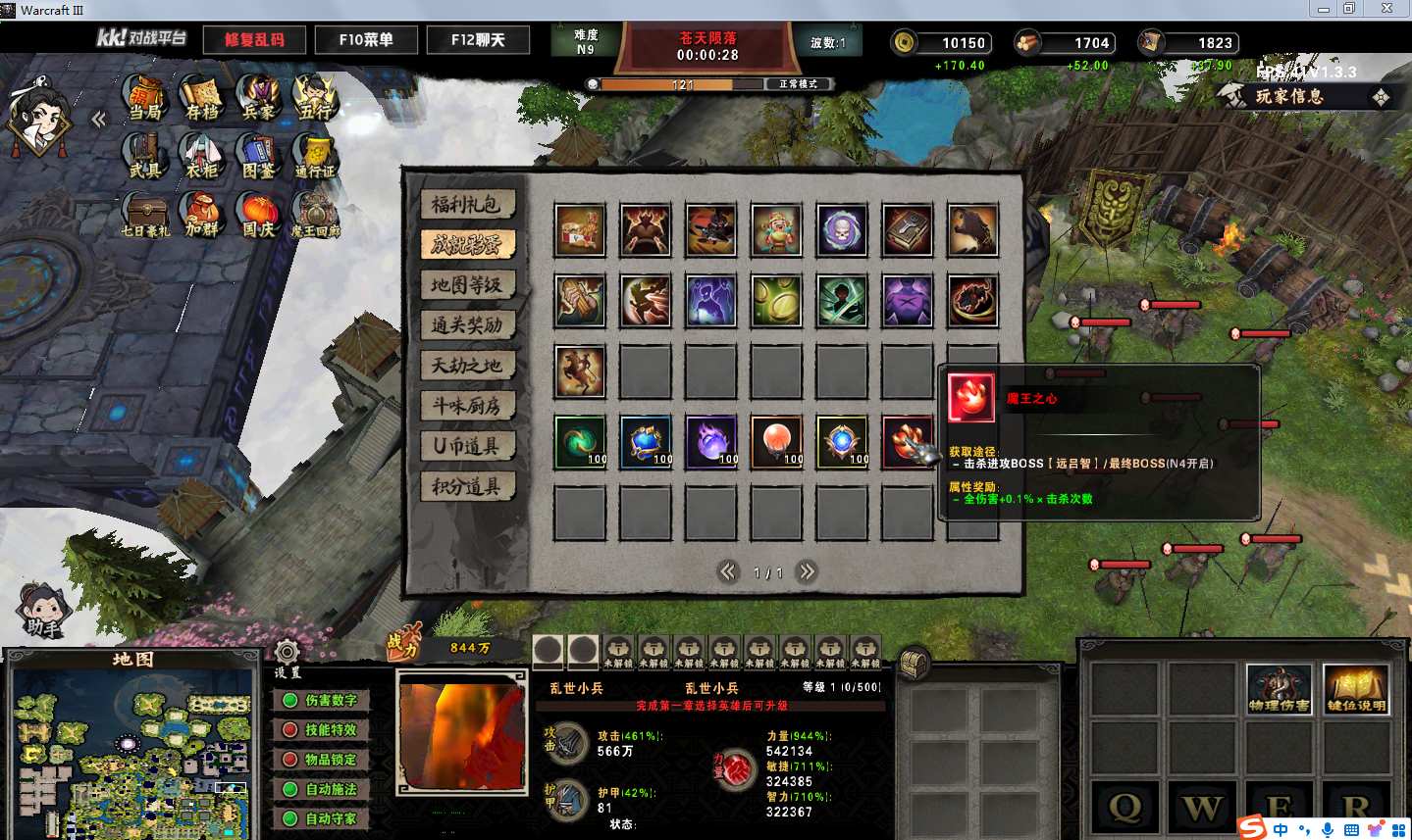 苍天陨落1.3.3地图下载+全商城特权+全存档+隐藏英雄+无CD+指令功能: