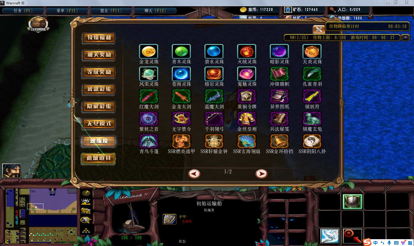 | 技能菜单【光环类技能】 | 自动化菜单【自动加钱木,提升英雄三围】 |