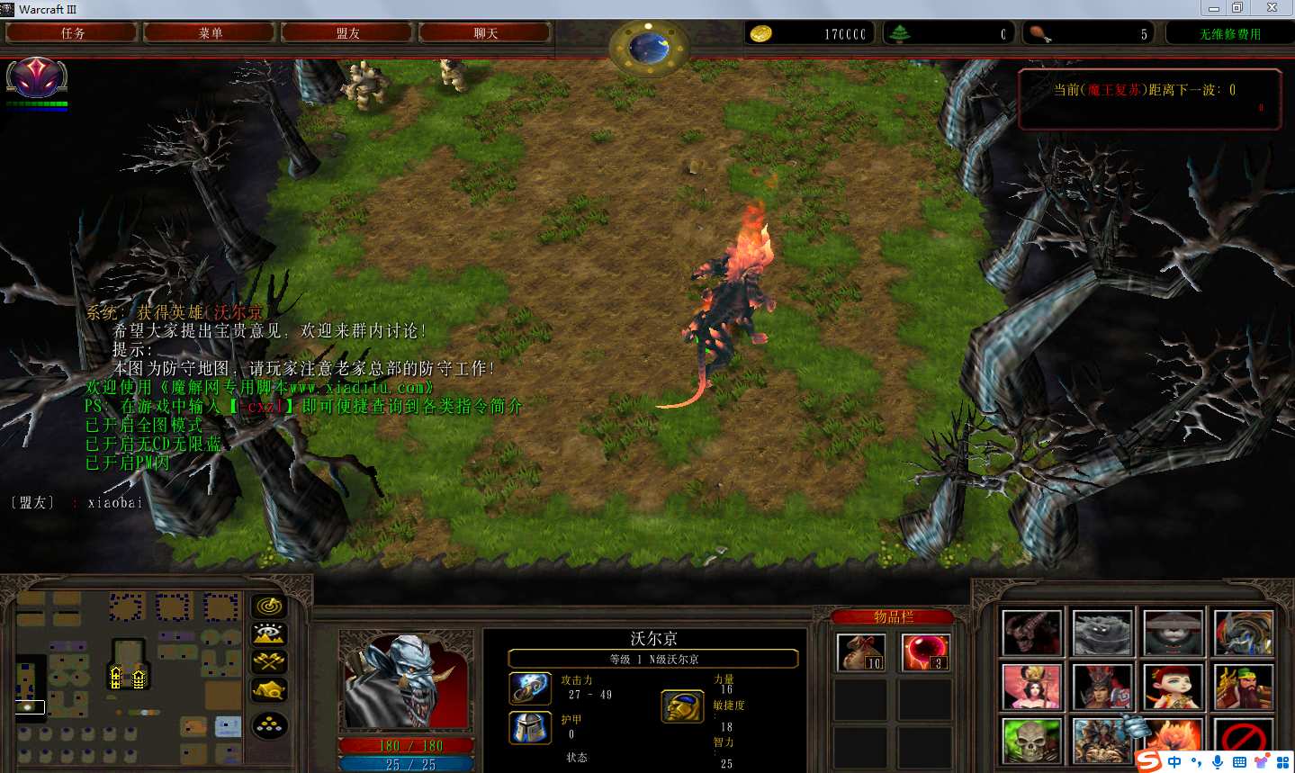 | 技能菜单【光环类技能】 | 自动化菜单【自动加钱木,提升英雄三围】 |