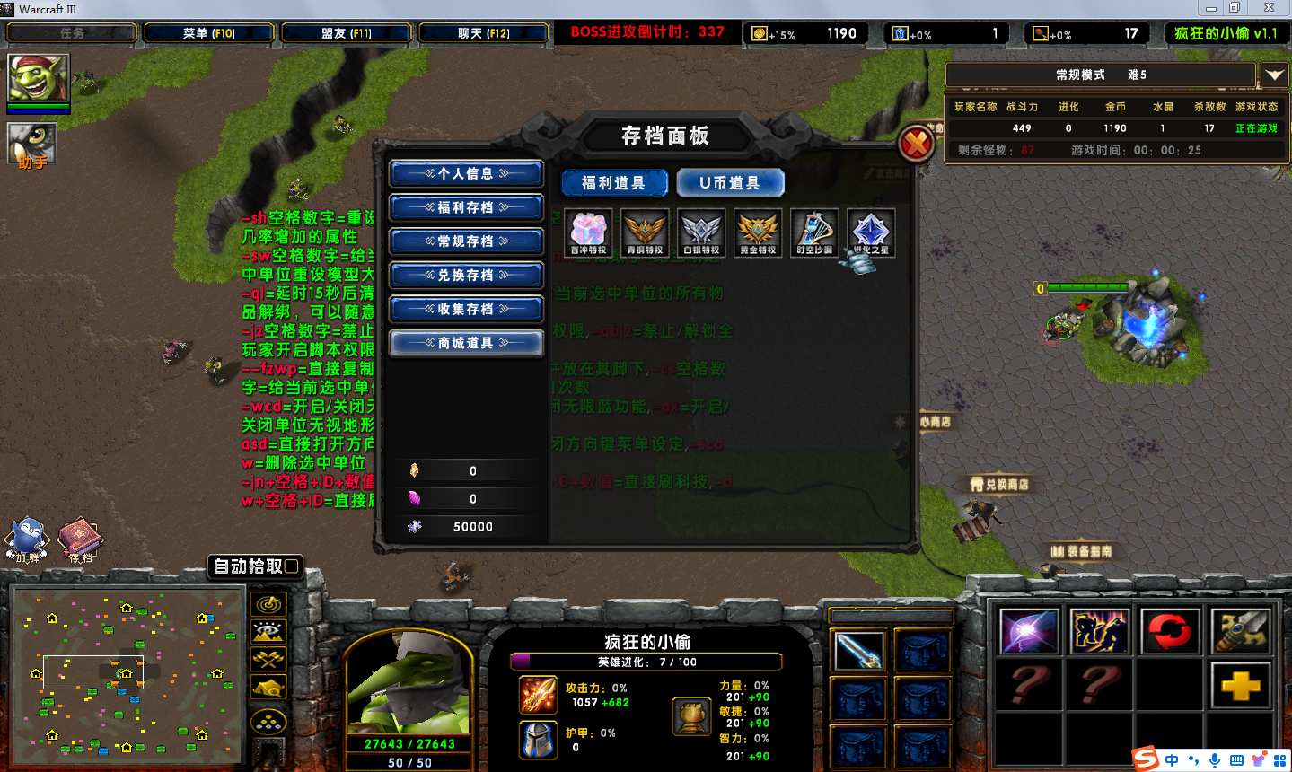 | 技能菜单【光环类技能】 | 自动化菜单【自动加钱木,提升英雄三围】 |