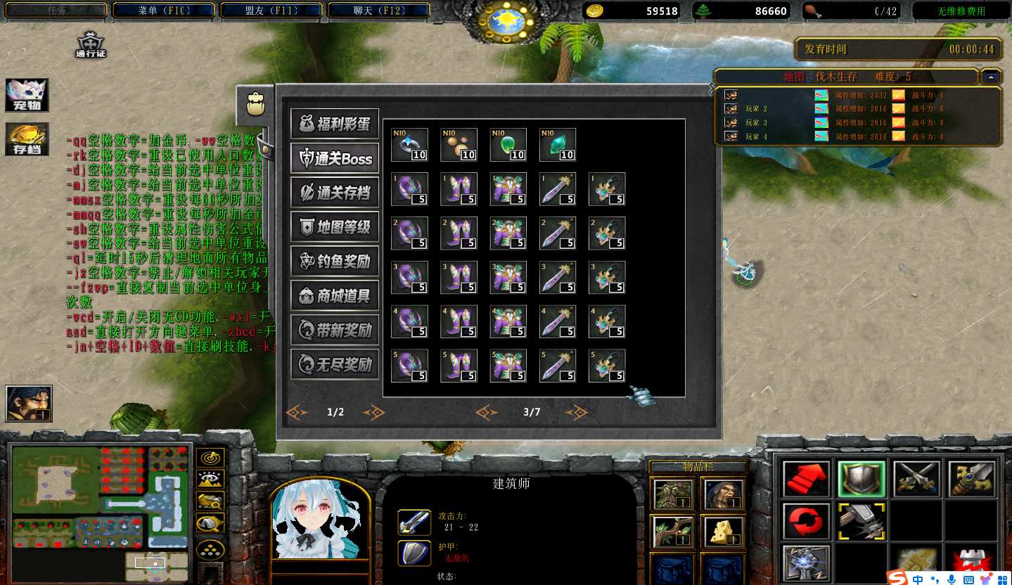 地图名字:伐木生存1.2.74地图下载+全商城特权+全存档+无CD+指令功能