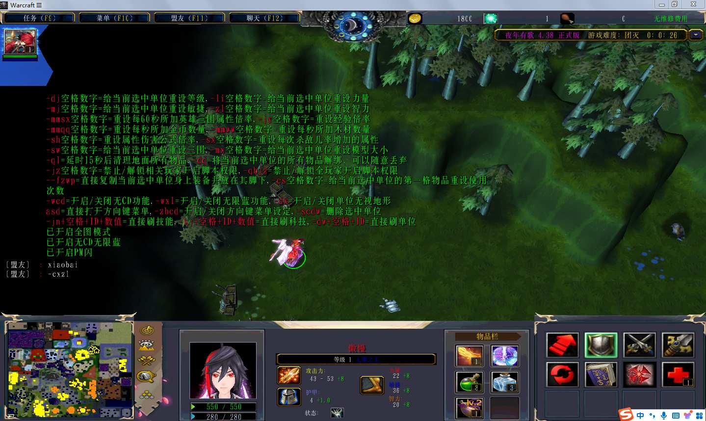 夜年有歌4.3.8地图下载+全商城特权+全存档+隐藏英雄+无CD+指令功能: