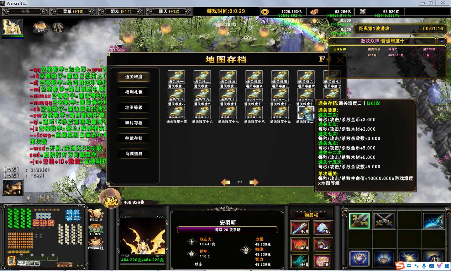 地图名字:放牧众神1.8.9地图下载+全商城特权+全存档+隐藏英雄+无CD+指令功能