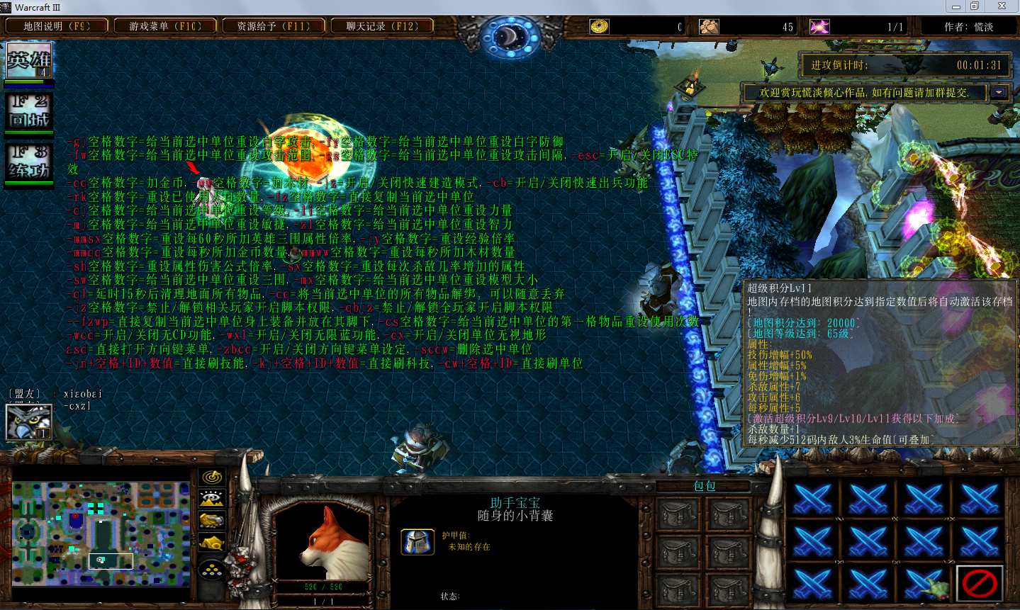 地图名字:慌神之域1.3.7地图下载+全商城特权+全存档+隐藏英雄+无CD+指令功能