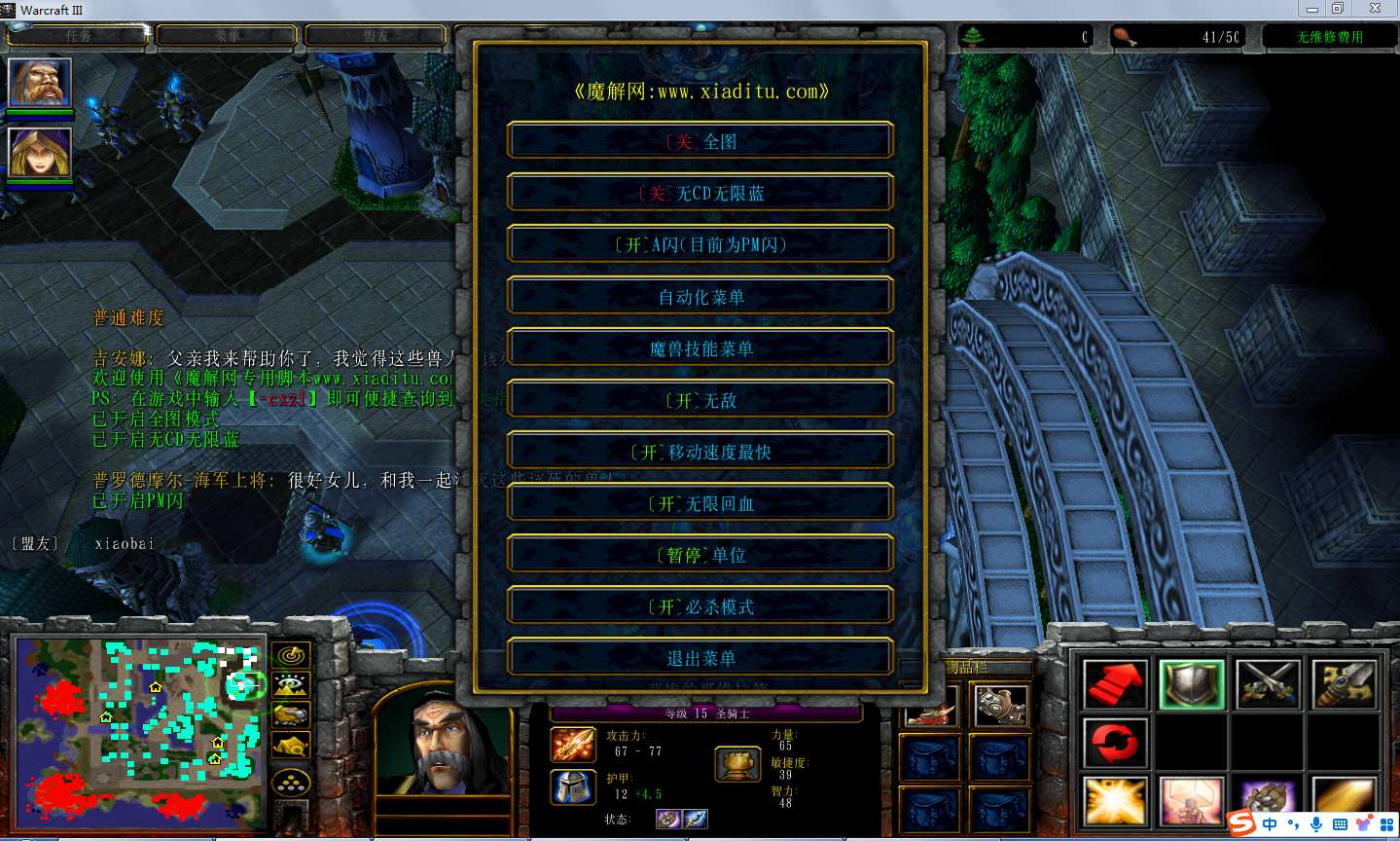 | 技能菜单【光环类技能】 | 自动化菜单【自动加钱木,提升英雄三围】 |