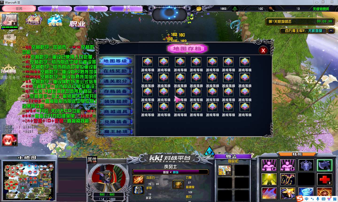 | 技能菜单【光环类技能】 | 自动化菜单【自动加钱木,提升英雄三围】 |