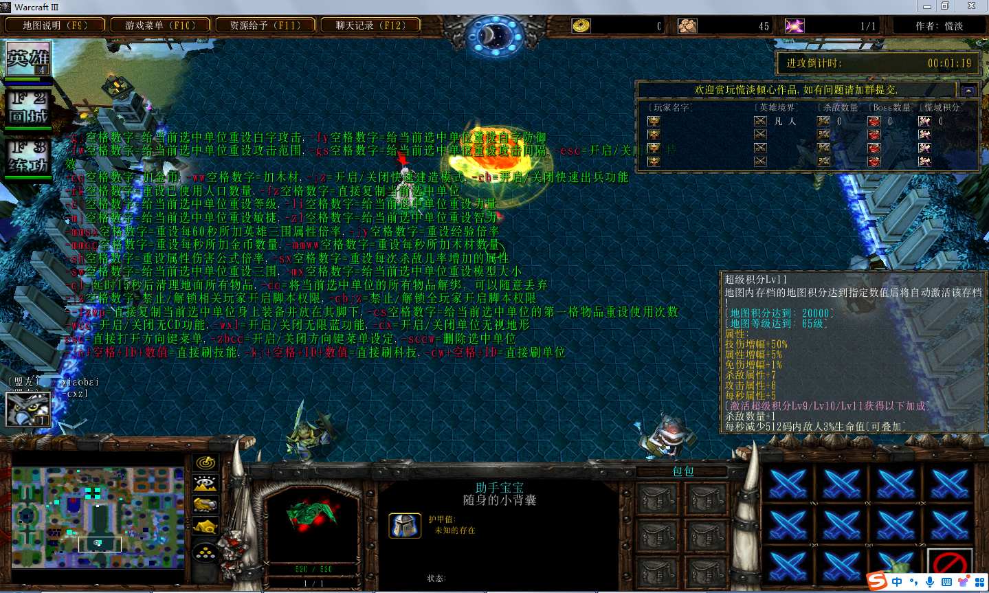 慌神之域1.3.8地图下载+全商城特权+全存档+隐藏英雄+无CD+指令功能: