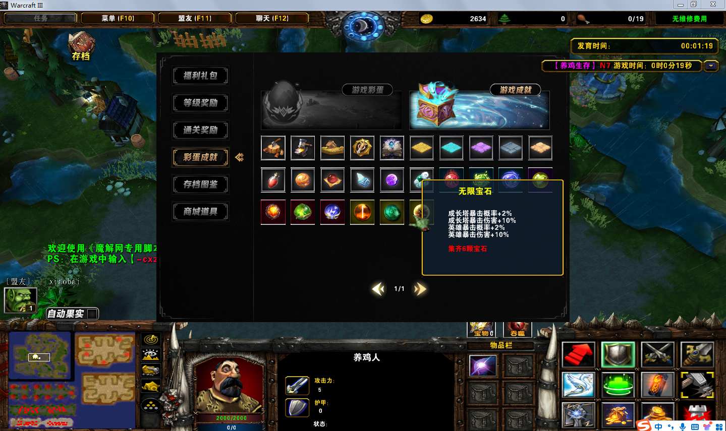 地图名字:养鸡生存1.0.22地图下载+全商城特权+全存档+无CD+指令功能