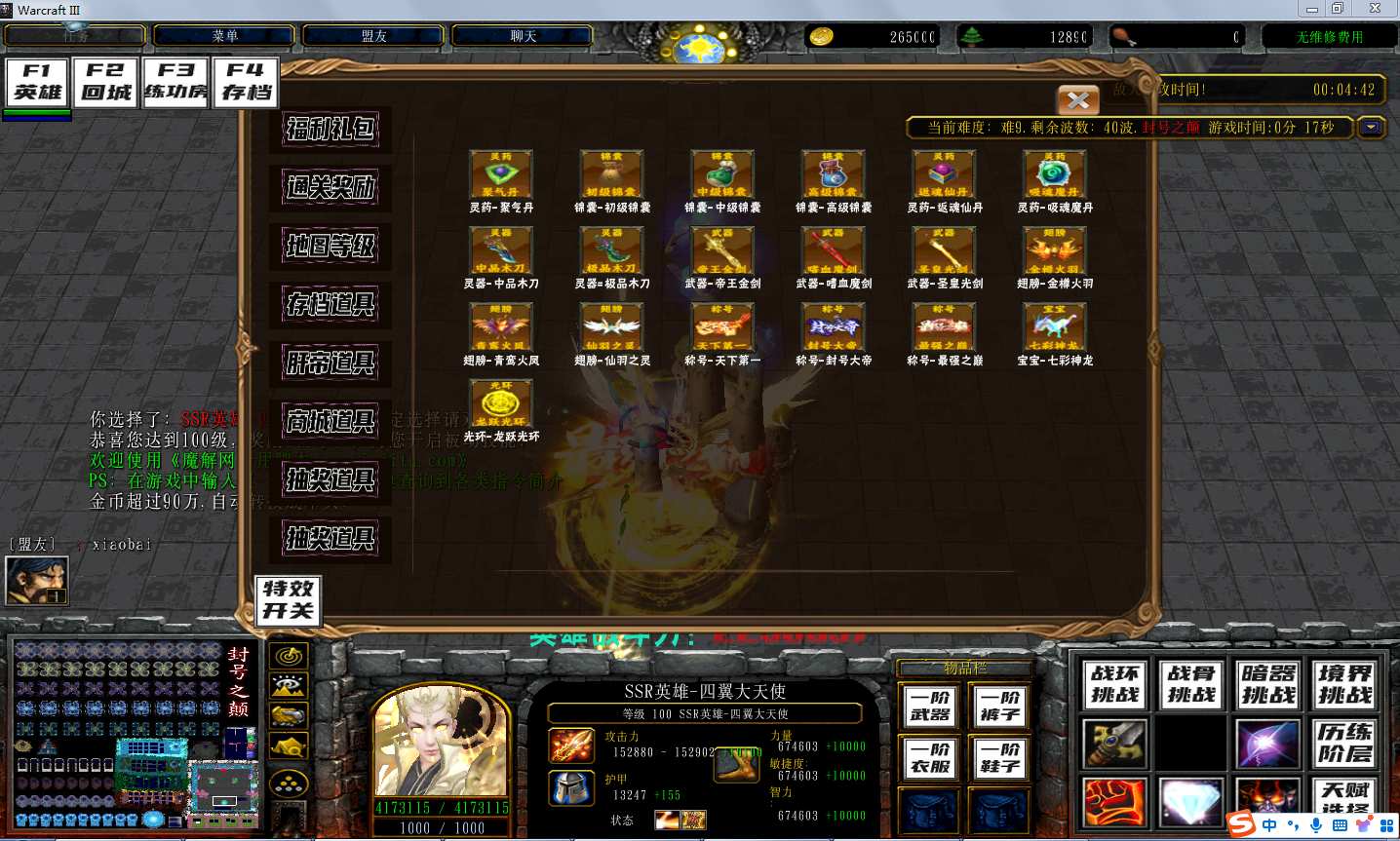 | 技能菜单【光环类技能】 | 自动化菜单【自动加钱木,提升英雄三围】 |