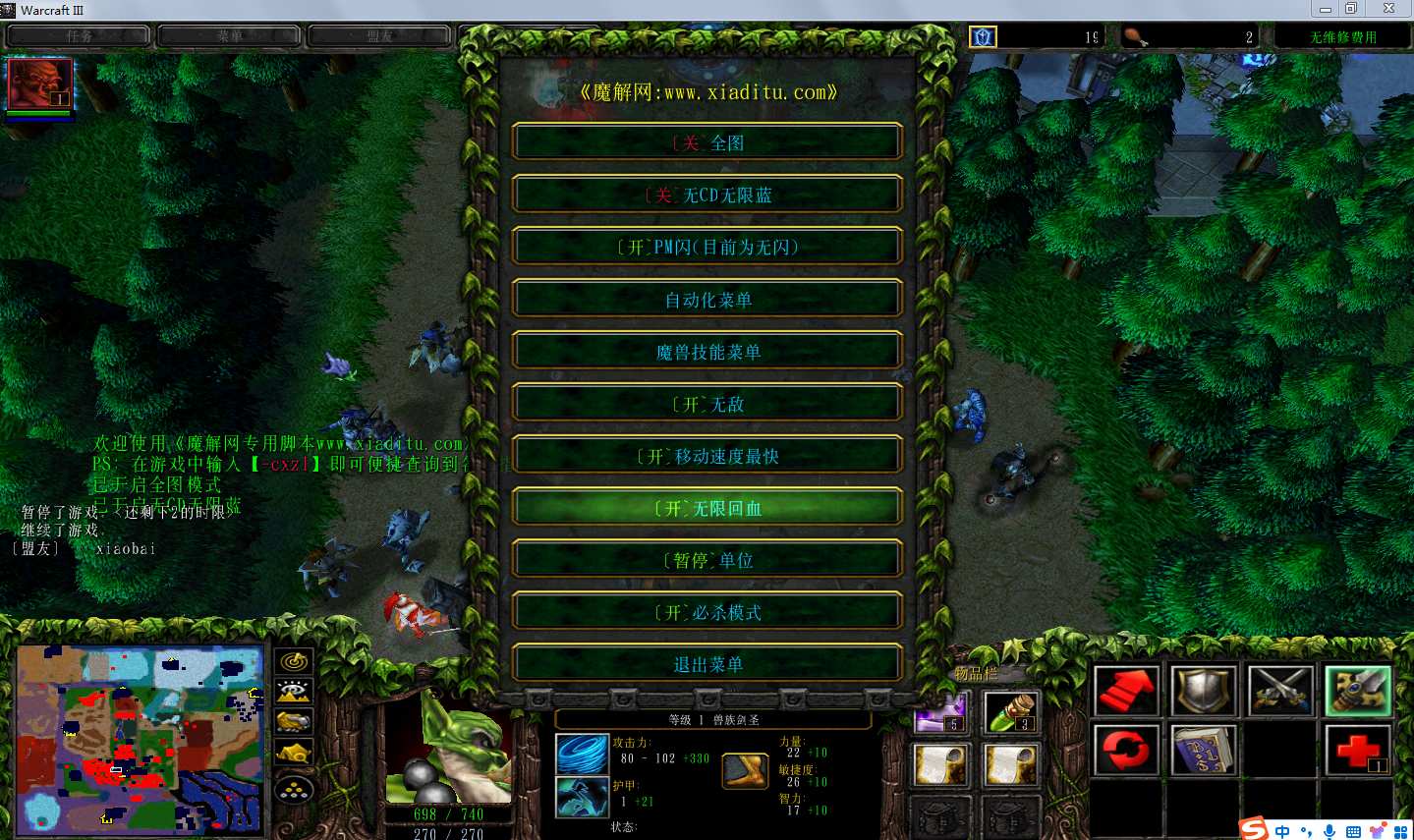 | 开启/关闭 移动速度最快 | 开启/关闭 无限回血 |