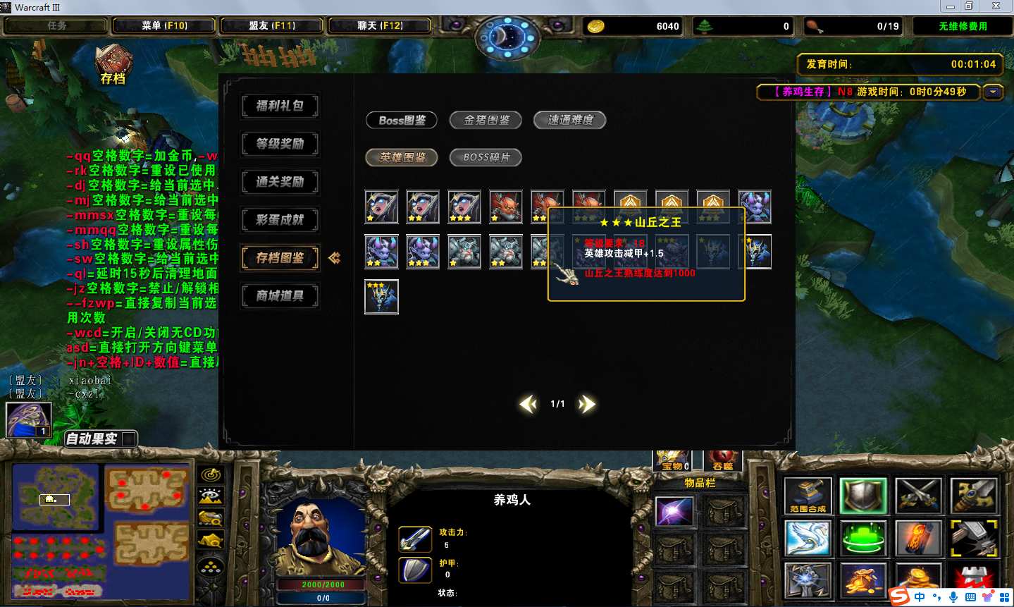 地图名字:养鸡生存1.0.25地图下载+全商城特权+全存档+无CD+指令功能