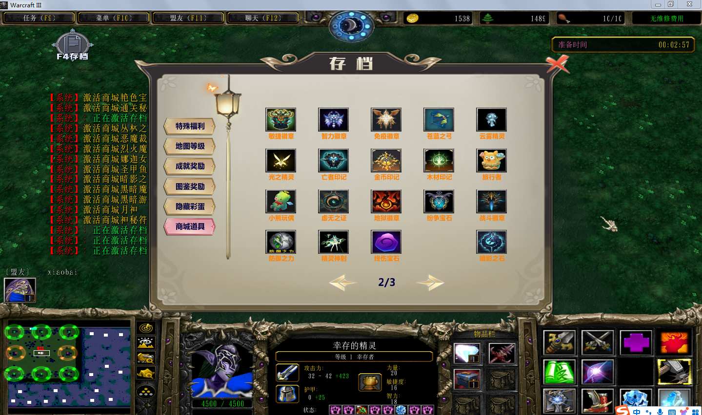 | 技能菜单【光环类技能】 | 自动化菜单【自动加钱木,提升英雄三围】 |
