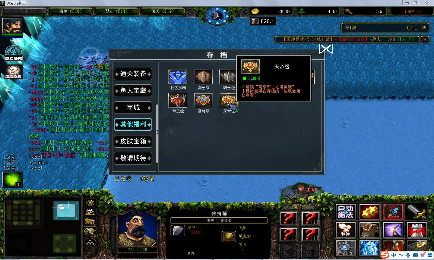 全随机td1.0.53地图下载+全商城特权+全存档+隐藏英雄+无CD+指令功能: