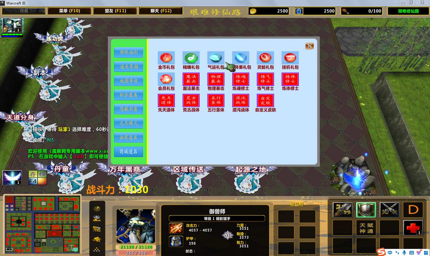 | 技能菜单【光环类技能】 | 自动化菜单【自动加钱木,提升英雄三围】 |