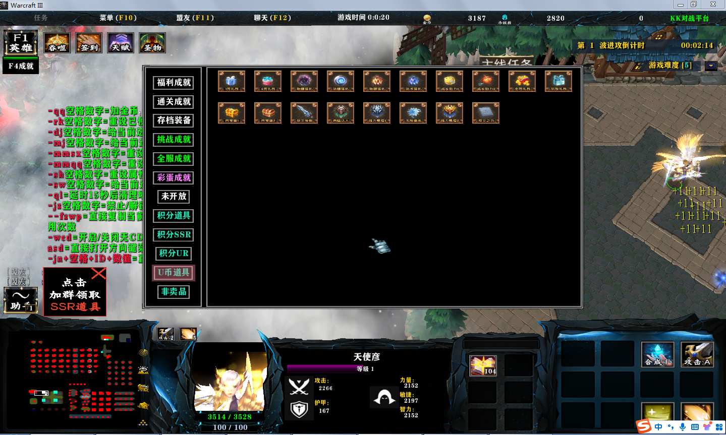 | 技能菜单【光环类技能】 | 自动化菜单【自动加钱木,提升英雄三围】 |