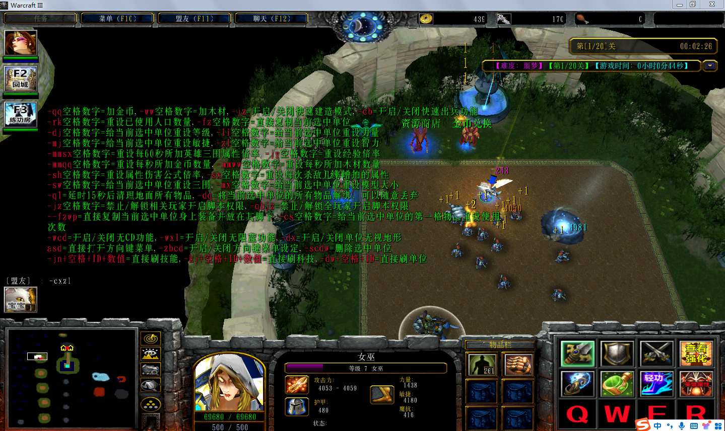 | 技能菜单【光环类技能】 | 自动化菜单【自动加钱木,提升英雄三围】 |