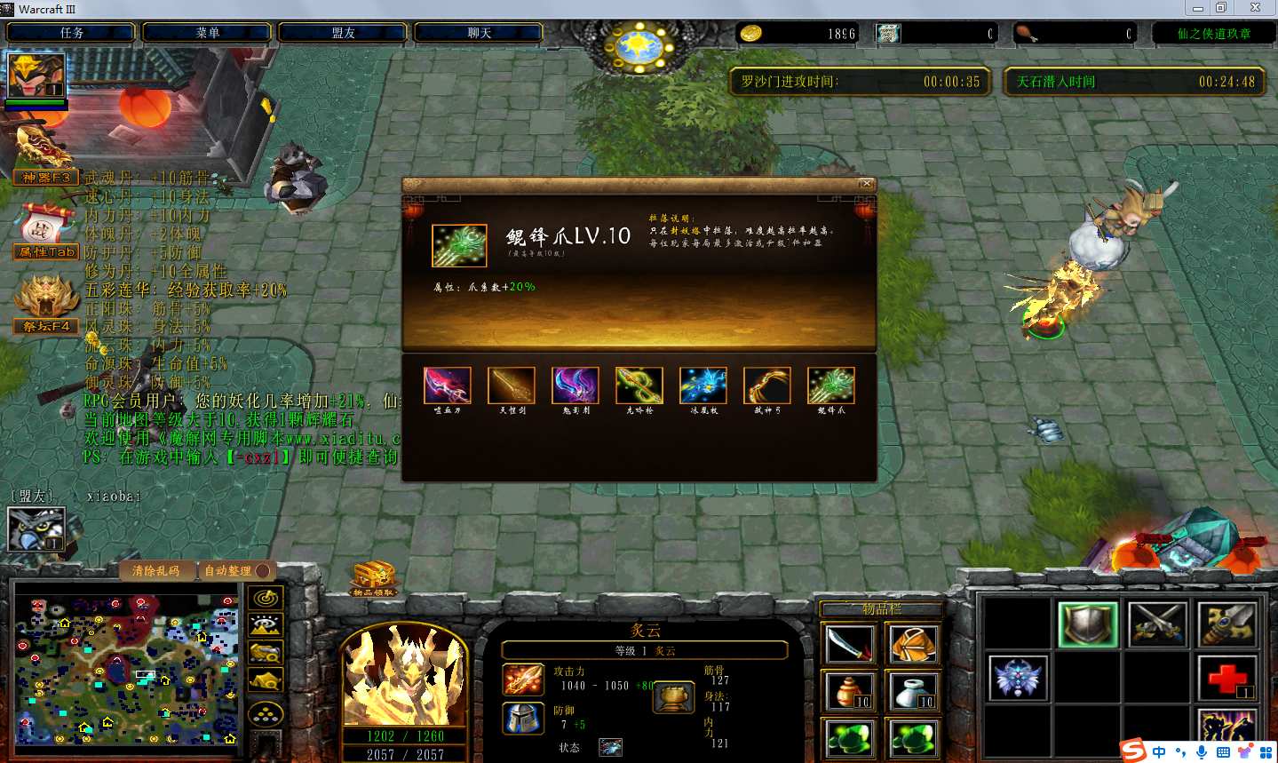 地图名字:仙之侠道Ⅱ玖章11.1.7地图下载+全商城特权+全存档+隐藏英雄+无CD+指令功能