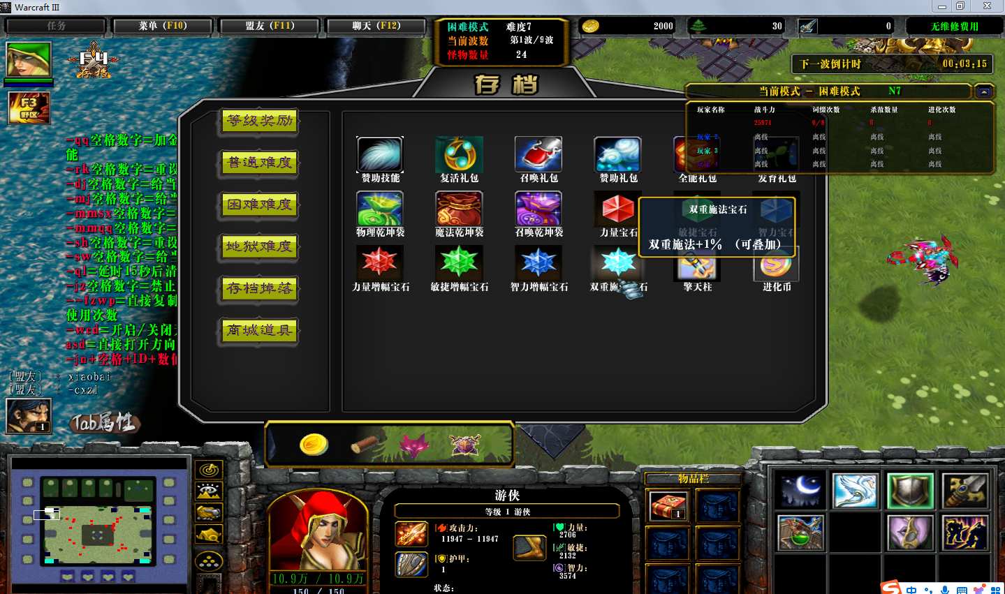 | 技能菜单【光环类技能】 | 自动化菜单【自动加钱木,提升英雄三围】 |