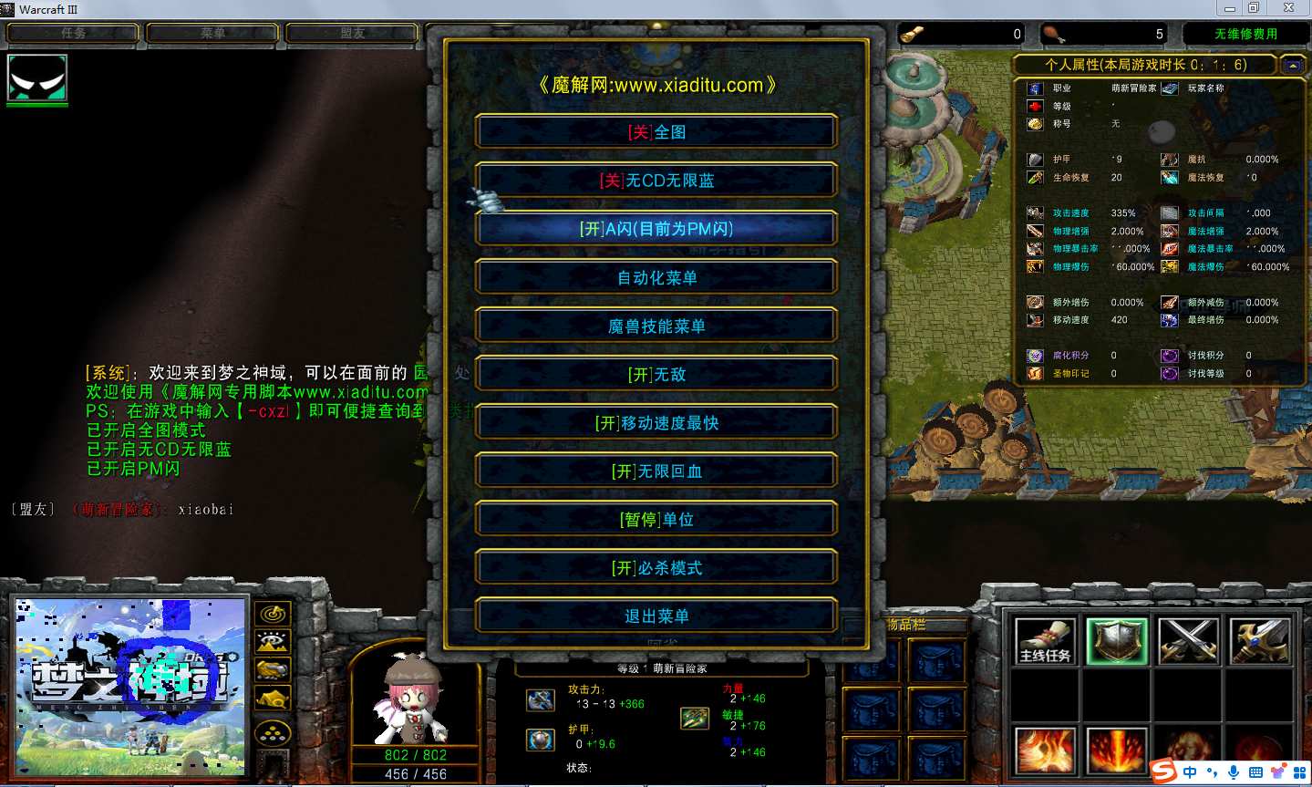 | 技能菜单【光环类技能】 | 自动化菜单【自动加钱木,提升英雄三围】 |