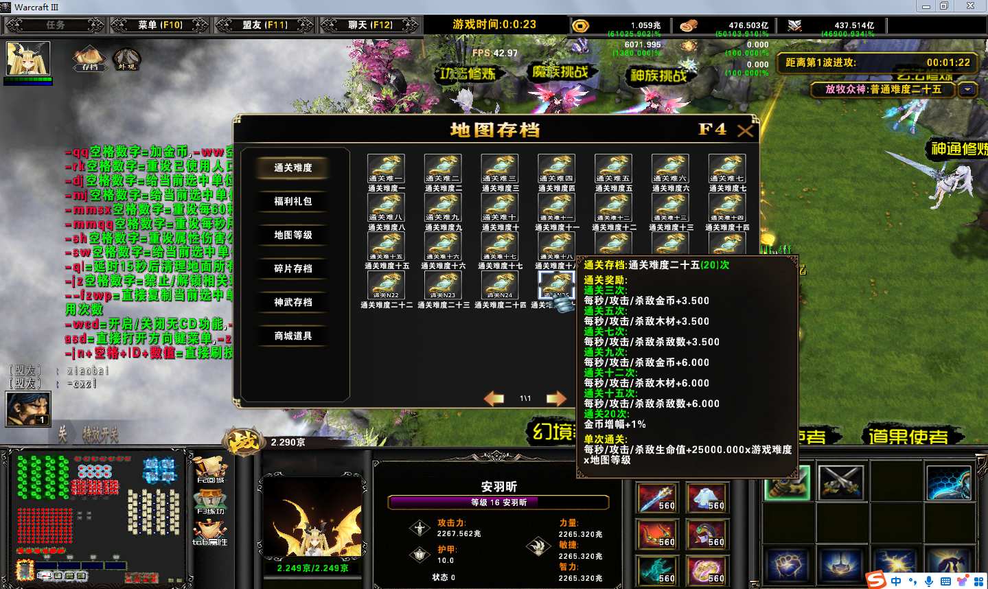 地图名字:放牧众神2.0.6地图下载+全商城特权+全存档+隐藏英雄+无CD+指令功能