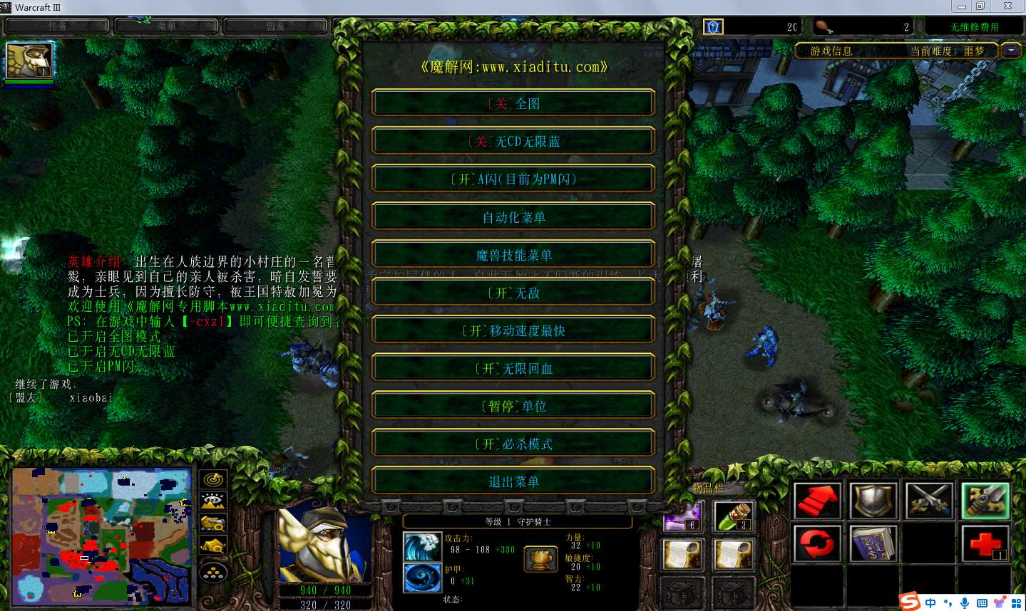| 技能菜单【光环类技能】 | 自动化菜单【自动加钱木,提升英雄三围】 |