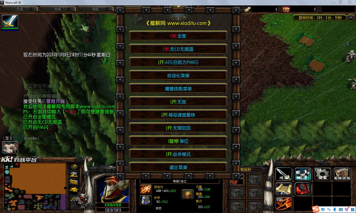 | 技能菜单【光环类技能】 | 自动化菜单【自动加钱木,提升英雄三围】 |