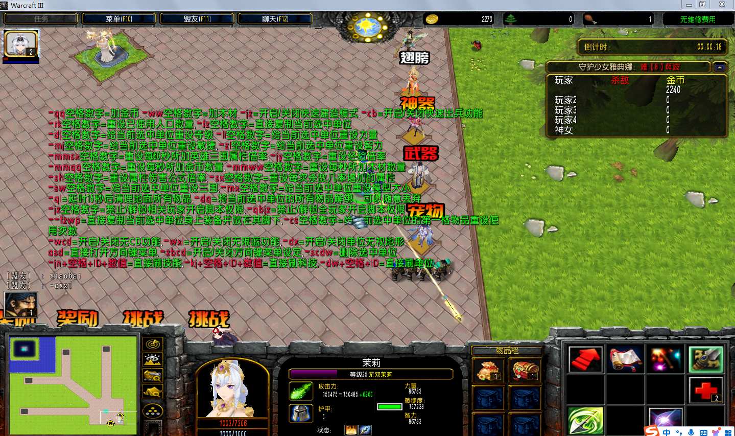 | 技能菜单【光环类技能】 | 自动化菜单【自动加钱木,提升英雄三围】 |