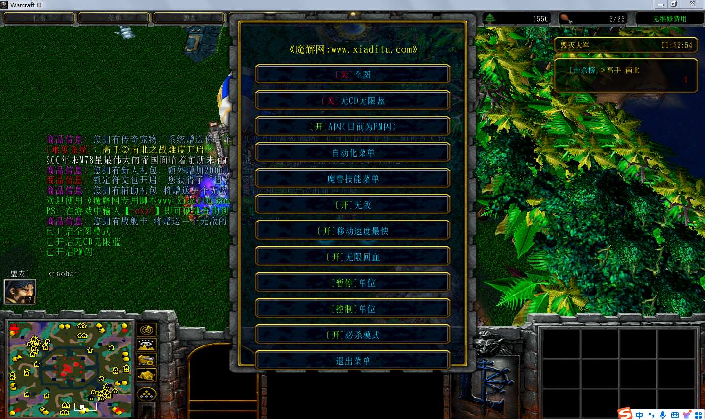 | 技能菜单【光环类技能】 | 自动化菜单【自动加钱木,提升英雄三围】 |