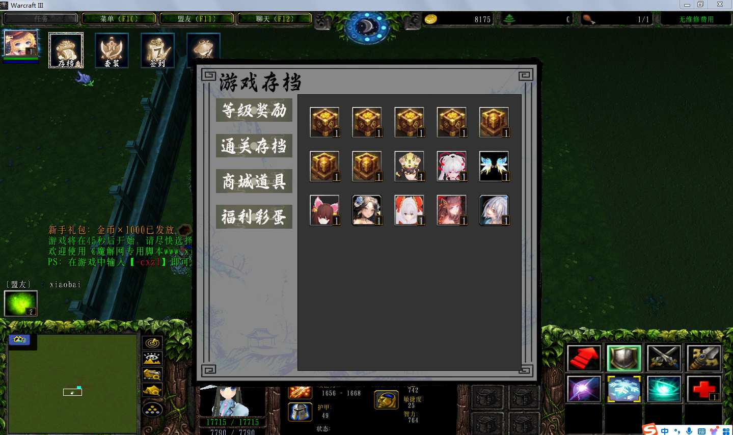 | 技能菜单【光环类技能】 | 自动化菜单【自动加钱木,提升英雄三围】 |