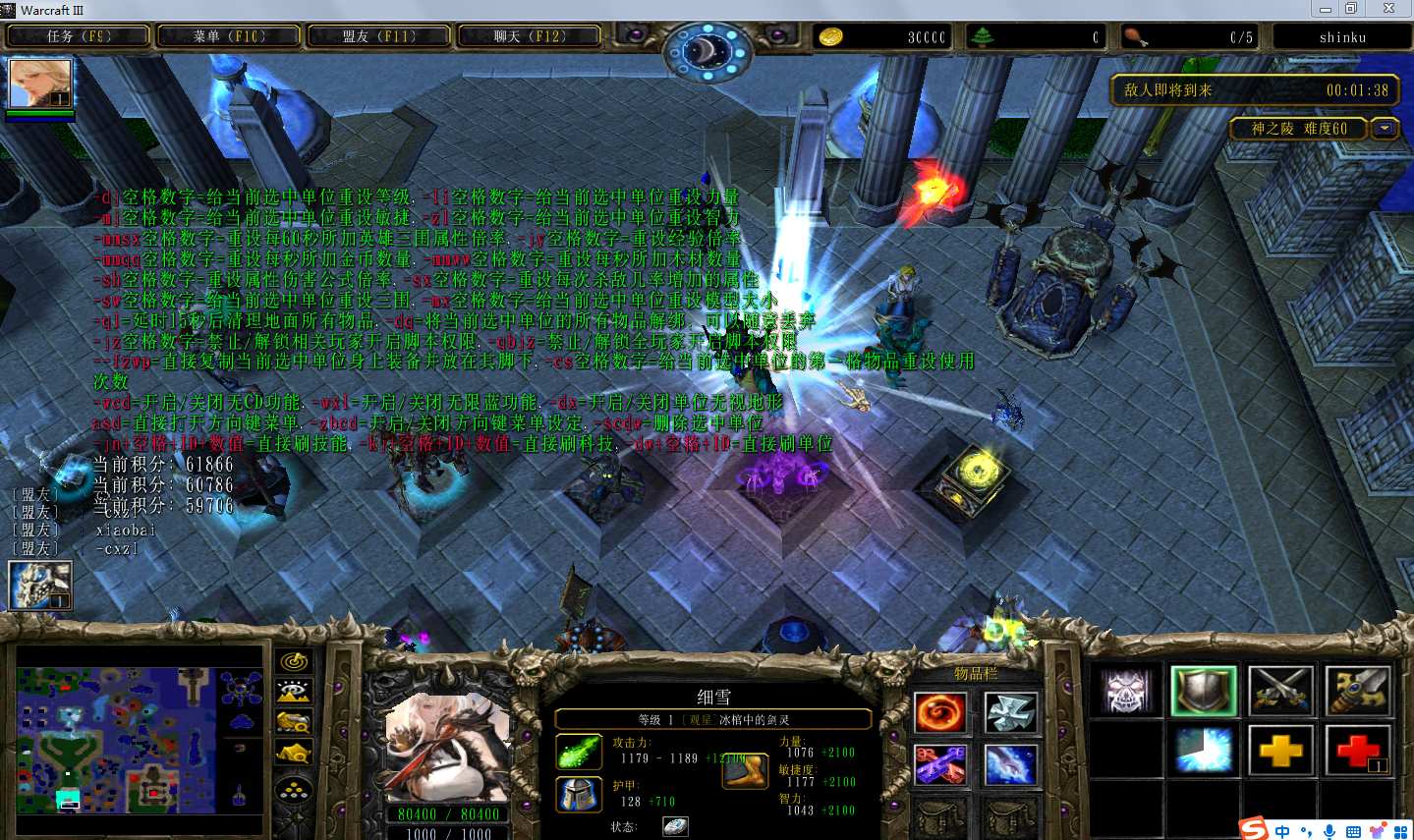 地图名字:神之陵2.1.8地图下载+全商城特权+全存档+隐藏英雄+无CD+指令功能