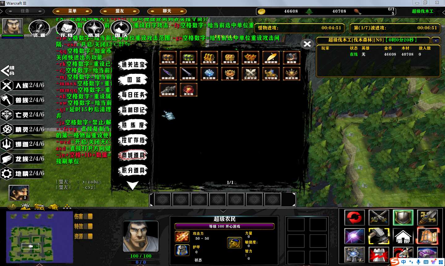 | 技能菜单【光环类技能】 | 自动化菜单【自动加钱木,提升英雄三围】 |